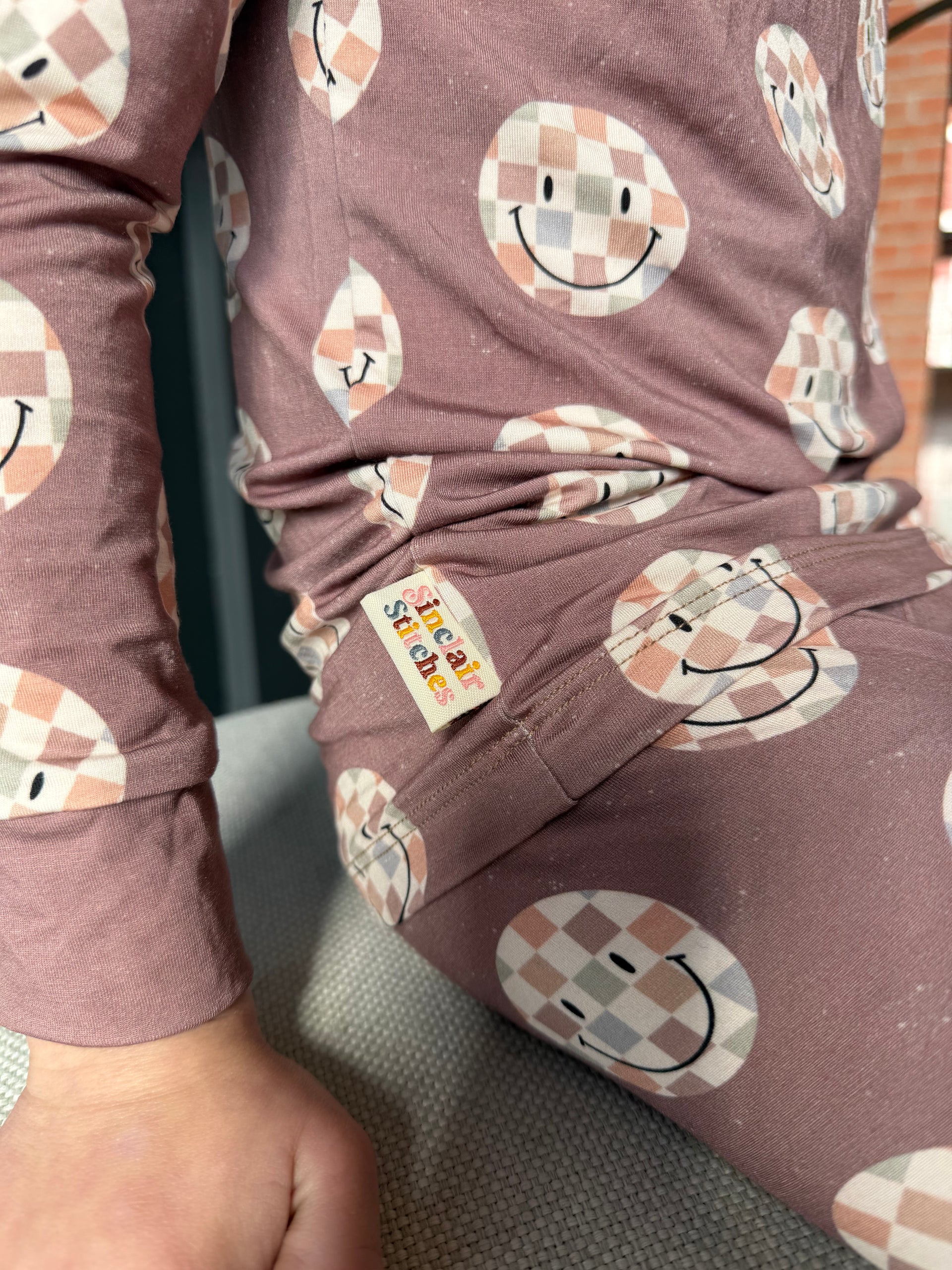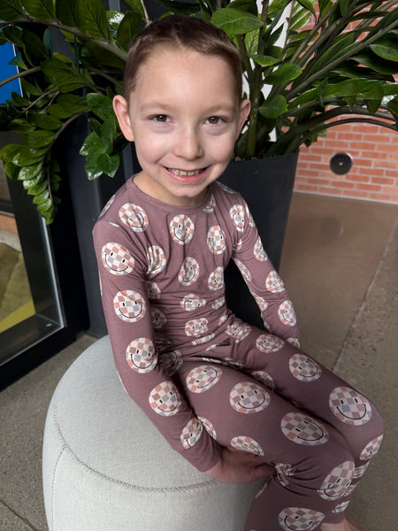 95% Bamboo 5% Spandex 2 Piece Long Sleeve Set- Checkered Smiles